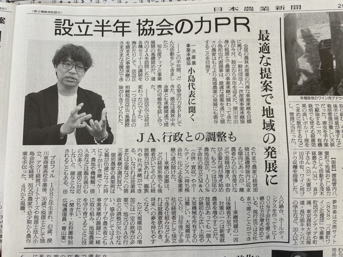 当協会は、一次産業事業承継相談・事業承継コンサルティング・組織再編コンサルティンなどの事業を行っており、一次産業に従事する企業や個人が円滑に事業承継を行えるよう支援することを目的として2025年3月に設立されました。